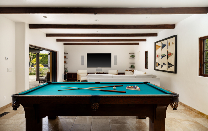 A private oasis designed for recreation, relaxation, and effortless entertaining, this remarkable property offers an exceptional blend of warmth, scale, and versatility. Expansive grounds create a retreat-like atmosphere, with a saltwater pool and spa, tennis court, putting green, and an expansive turf area ideal for soccer, outdoor recreation, or play, along with beautifully arranged outdoor spaces that make the property feel like a destination of its own. Mature trees, lush landscaping, stone patios, and covered porches enhance the sense of privacy while creating a natural connection between the home and its surroundings. Inside, the residence is filled with character and light, with vaulted beamed ceilings, custom built-ins, and gracious living spaces that feel both refined and comfortable. The kitchen serves as the heart of the home, opening naturally to the main living areas and looking out to the beautiful grounds, creating a wonderful backdrop. The overall flow is thoughtful and welcoming, with spaces that are equally suited to quiet enjoyment and entertaining. The primary suite offers a luxurious retreat, with ocean views, a fireplace, private balcony, and a beautifully appointed bath that brings a sense of calm and privacy. Additional bedroom suites and guest rooms are arranged with flexibility in mind, providing comfort and separation. A spacious living area with bi-fold doors opens to a patio overlooking the pool, creating a seamless indoor-outdoor experience. Complete with a bar and well suited as a game room or casual entertaining space, it is joined by a gym and a temperature-controlled wine cellar with storage for approximately 2,500 bottles. Beautifully designed and exceptionally well equipped, the property offers a rare opportunity to enjoy a lifestyle centered around comfort, recreation, and gathering in one truly special place.